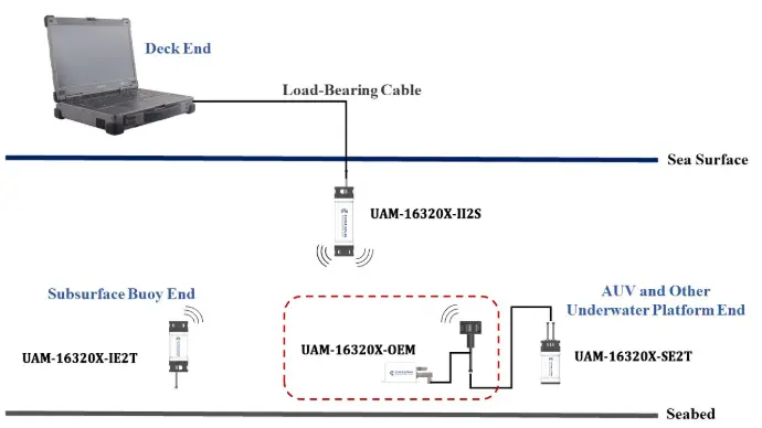 The UAM-16320X-OEM underwater acoustic modem device is a deep-collaboration model, offered in an OEM form, capable of serving large platforms such as moorings, seabed stations, UUVs, gliders, wave gliders, and buoys. With OEM integration and extensive platform adaptation experience, it provides maximum flexibility for customers.